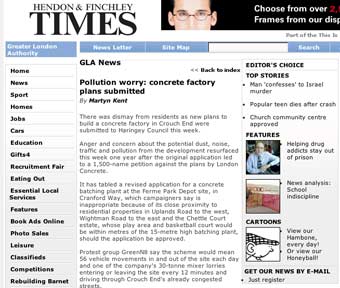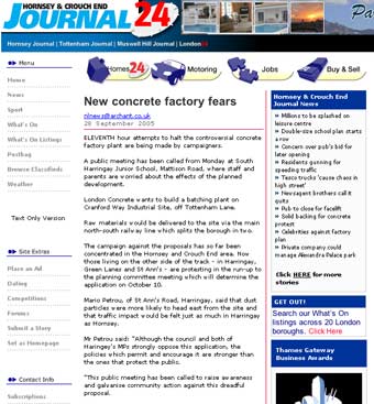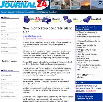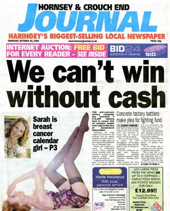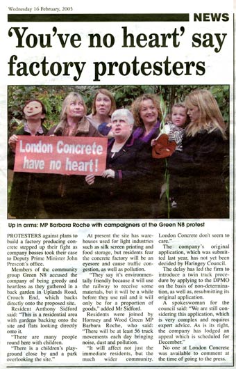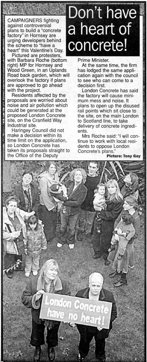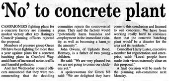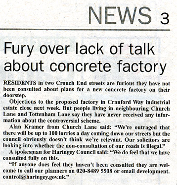 London Concrete in the News 2005 London Concrete press cuttings 2004 | 2006 To read any of the articles click on the images or links below 20.10.05 | Hornsey Journal 14.10.05 |Ham&High Broadway 13.10.05 |Avenues 13.10.05| Hornsey Journal 12.10.05 | The Haringey Advertiser 12.10.05 | Evening Standard
