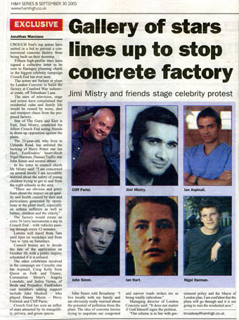 6.10.05 | Hornsey Journal 5.10.05 | The Haringey Advertiser 30.9.05 | Ham&High Broadway
