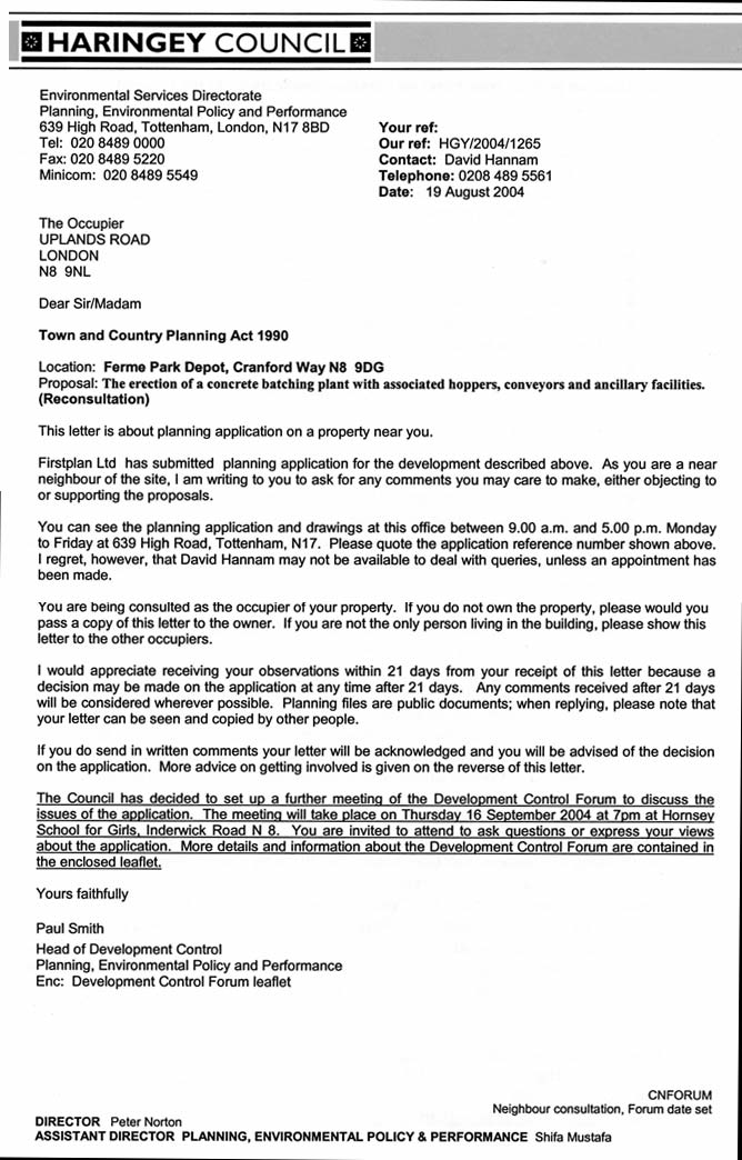 Haringey consultation letters