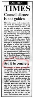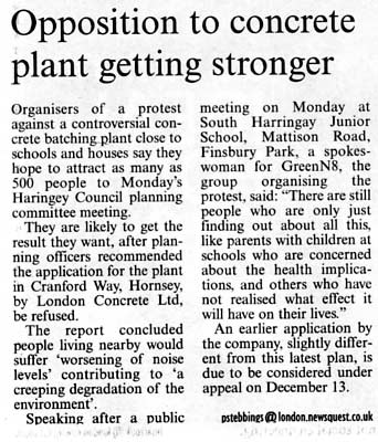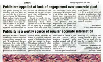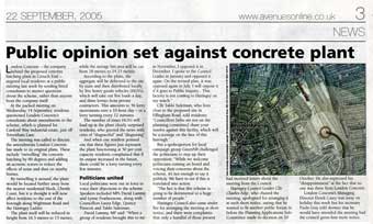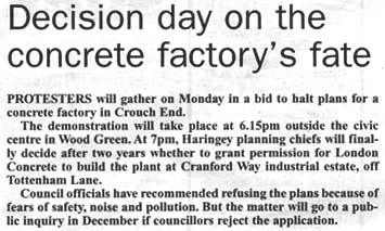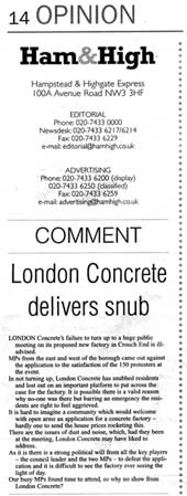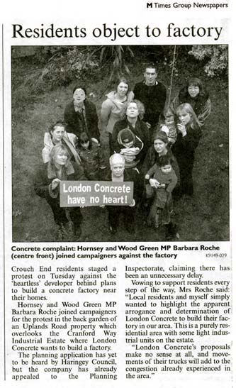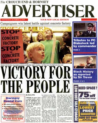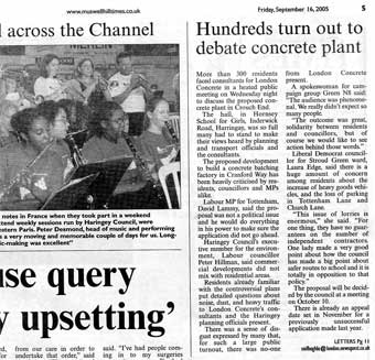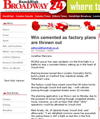 London Concrete in the News 2005 London Concrete press cuttings 2004 | 2006 To read any of the articles click on the images or links below 20.10.05 | Hornsey Journal 14.10.05 |Ham&High Broadway 13.10.05 |Avenues 13.10.05| Hornsey Journal 12.10.05 | The Haringey Advertiser 12.10.05 | Evening Standard
