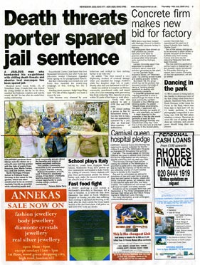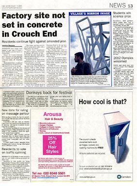16.9.05 | Ham&High Broadway 16.09.05 | Muswell Hill & Crouch End Times To read the article click on the images below or visit http://www.muswellhilltimes.co.uk 08.09.05 | Tottenham wood green Journal 02.09.05 | Muswell Hill & Crouch End Times To read the article click on the images below or visit http://www.muswellhilltimes.co.uk 12.8.05 |Ham&High Broadway 01.08.05 |New Statesman 29.7.05 |Ham&High Broadway 20.7.05 |The HAringey Advertiser 21.7.05 |Hornsey Journal 15.07.05 | Muswell Hill & Crouch End Times To read the article click here or visit http://www.muswellhilltimes.co.uk 14.7.05 |Hornsey Journal 14.7.05 |Ham&High Broadway 08.07.05 | Muswell Hill & Crouch End Times To read the article click here or visit http://www.muswellhilltimes.co.uk 16.2.05 |The HAringey Advertiser