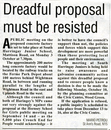 below AggregateResearch.com Birmingham Post 20.1.05 |Hornsey Journal To read the article click here
