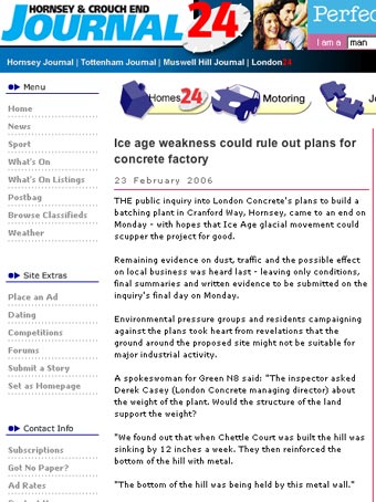 London Concrete in the news 2006 London Concrete press cuttings 2004 | 2005 To read any of the articles click on the images or links below 15.06.06| Hornsey Journal 14.06.06| Muswell Hill and Crouch End Times 14.06.06| Haringey Advertiser 09.06.06| Ham and High Click here for Page 2 09.06.06| Muswell Hill and Crouch End Times 07.06.06| Hornsey Journal