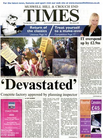 07.06.06| Haringey Advertiser 22.3.06| Hornsey Journal 23.2.06| Hornsey Journal 2.2.06| Hornsey Journal